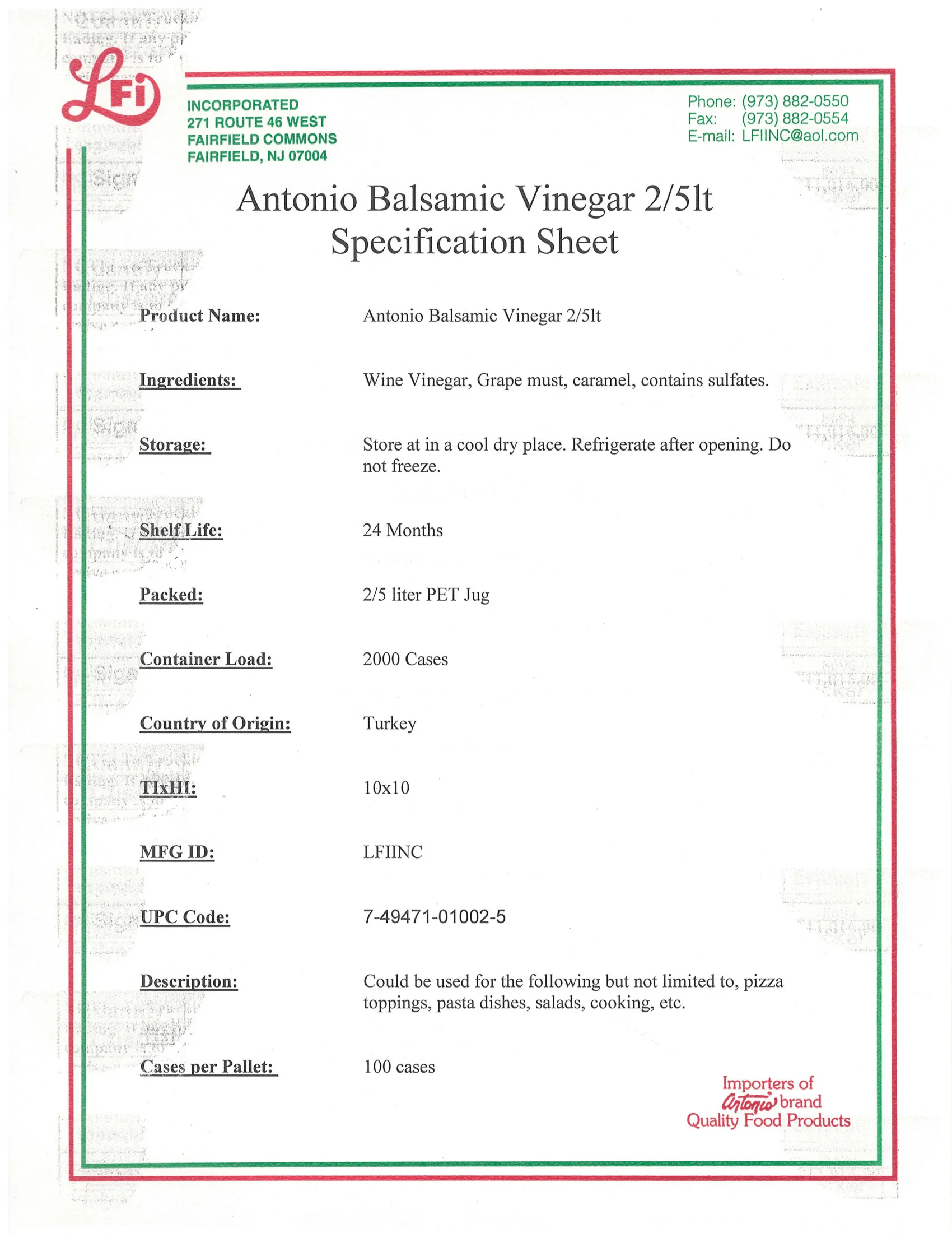 Enhance your dishes with the rich, tangy flavor of Antonio Balsamic Vinegar. This versatile vinegar combines wine vinegar, grape must, and caramel for a balanced, authentic taste. Ideal for pizza toppings, pasta dishes, salads, marinades, and cooking, it’s a kitchen staple for both home and foodservice use. Packed in convenient 5-liter PET jugs and 12/17 oz bottles. Both offering a 24-month shelf life, Antonio Balsamic Vinegar delivers consistent quality and flavor for all your culinary needs.
